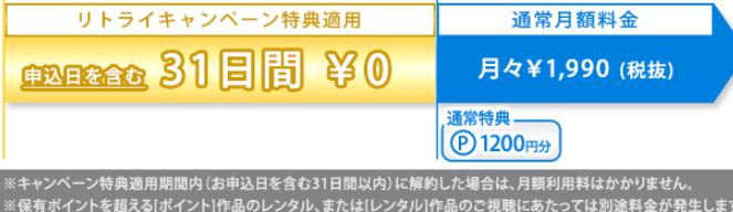 また31日以内で解約しても、見たい時期ゴロを見計らって何度もリライトキャンペーンの案内が届きます!