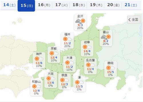 昨年2018年の大阪の双子座流星群の見頃のピーク日は、気温がグンとさがった寒い日でしたが、今年は気温はちょっと高めです。