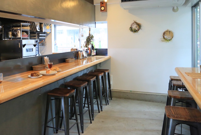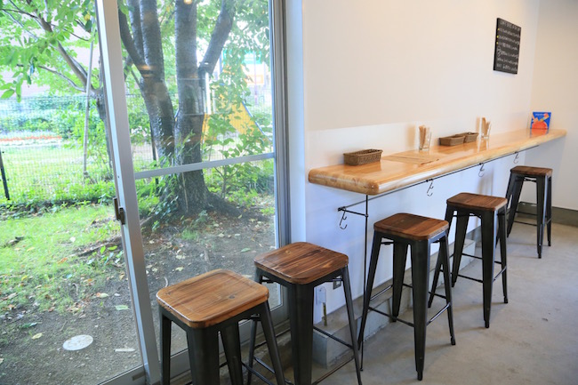店内はカウンターが2列。右側にチラリと見えるカウンターからの眺めや、すぐ外の景色が素敵なんですよ!