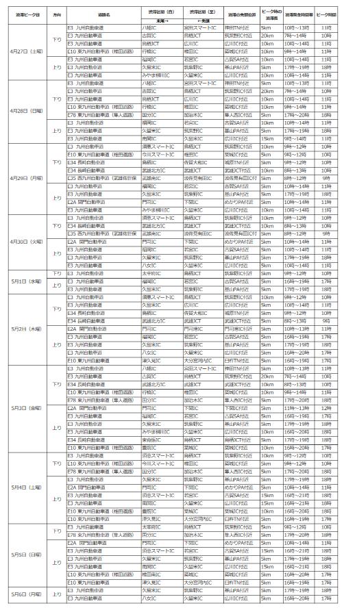 ここでは2019年ゴールデンウィーク期間中の九州内の高速道路とインターチェンジの渋滞予測についてまとめています。