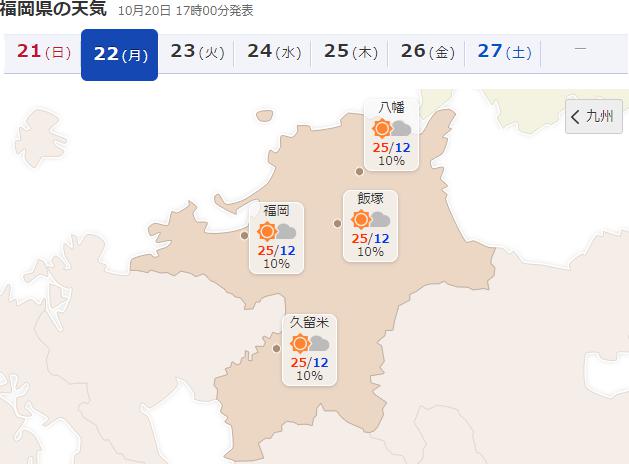 10月21日(日)から22日の明け方にかけて、福岡のお天気は上々です!