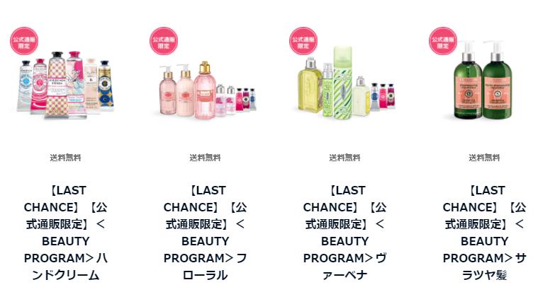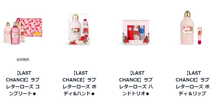 他にも、オンライン限定で「ラストチャンス」というカテゴリーができていて、過去に人気のあった商品が詰まったセットが超お得な感じで発売されていました!