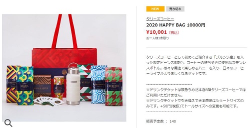 タリーズコーヒー福袋2020ののオンラインネット予約